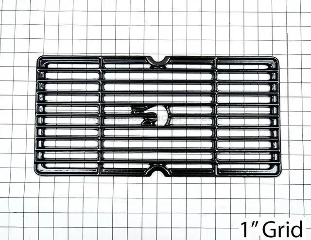 Cooking Grate. Cast iron porcelain cooki 16 3/4 x 8 3/8. lain cooking grate. Measures approximately 16.88"L x 8.42"W. Includes one grate. Replaces part number 80017395