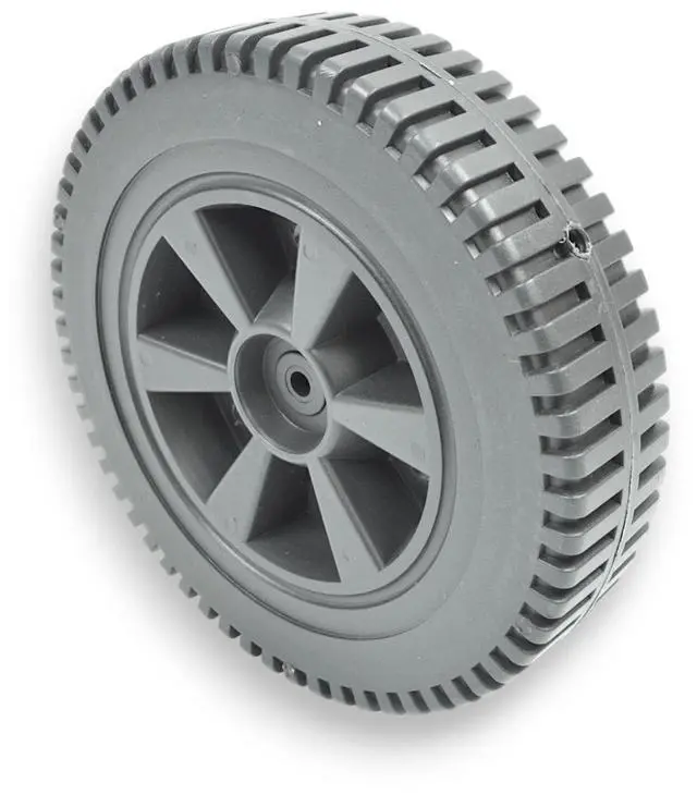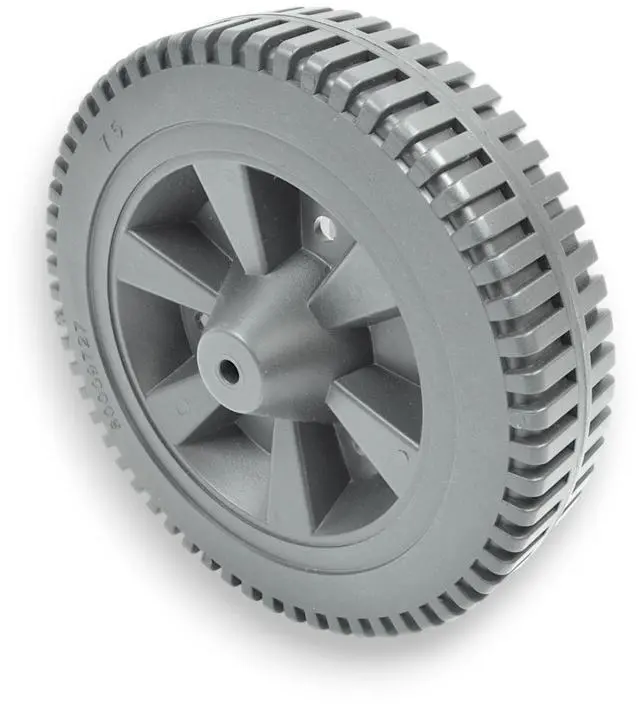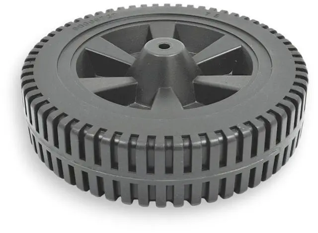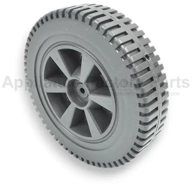 8 inch Wheel. Fits multiple grills 5/16" diameter hole. Rangemaster and Char-Broil grill models. Measures approximately 8"W. Replaces part number 80009727