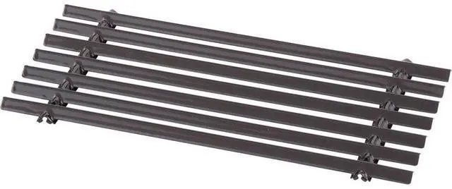 Cooking Grate. Stamped black porcelain g. orcelain grate. Measures approximately 16.83"L X 8.29"W. Includes one cooking grate
