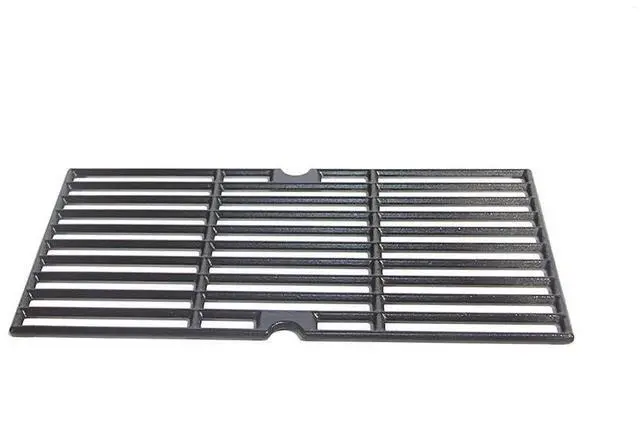 • Cooking Grate. Black porcelain cast iron . cast iron cooking grate.. Measures approximately: 16.9" L x 8.2" W. Hardware included.