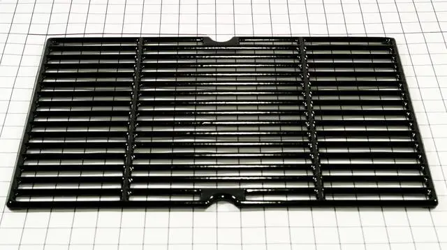 Cooking Grate. Gloss black Cast iron por. t iron porcelain grate. Measures approximately 18.3"L x 13.14"W. Includes one grate