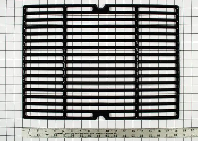 • Cooking Grate. Gloss black Cast iron por . t iron porcelain grate. Measures approximately 18.3"L x 13.14"W. Includes one grate