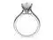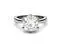 This fabulous Moissanite by Charles & Colvard solitaire engagement ring showcases a 9.5mm round brilliant cut moissanite gemstone. Beautifully crafted in rhodium-plated 14K white gold and gracefully set in a six-prong setting. The width of the band at its narrowest point is approximately 1.3mm and the width of the band at its widest point is approximately 2.54mm. Ring size 8. The total Diamond Equivalent Weight (DEW) is 3.10ct (Actual Weight 2.75ct).