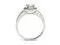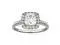 This gorgeous engagement ring showcases a 6mm cushion brilliant cut Moissanite by Charles & Colvard gemstone. Beautifully crafted in rhodium plated 14K white gold and secured in a four prong setting. Ring size 5. The Total Diamond Equivalent Weight (DEW) is 1.40cttw (Actual Weight 1.19cttw).
