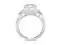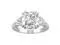 This beautiful engagement ring showcases a 9.5mm cushion cut Moissanite by Charles & Colvard gemstone. Beautifully crafted in rhodium plated 14K white gold and secured in a four prong setting. Ring size 5. The Total Diamond Equivalent Weight (DEW) is 5.00cttw (Actual Weight 4.46cttw).