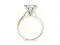 This fabulous Moissanite by Charles & Colvard solitaire engagement ring showcases a 9.5mm round brilliant cut moissanite gemstone. Beautifully crafted in yellow gold and gracefully set in a white gold six-prong setting. Ring size 5. The total Diamond Equivalent Weight (DEW) is 3.10ct (Actual Weight 2.75ct).