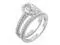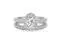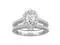 This elegant bridal set showcases a 7x5mm oval Moissanite by Charles & Colvard gemstone. Beautifully crafted in rhodium plated 14K white gold and secured in a four-prong setting. Ring size 7. The Total Diamond Equivalent Weight (DEW) is 1.88cttw (Actual Weight 1.75cttw).