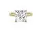 Promise her your love and devotion with this Moissanite by Charles & Colvard engagement ring. Gleaming brightly in 14K yellow gold, this elegant ring features a sparkling 9mm cushion-cut stone displayed in a secure four-prong setting. Sure to win her heart, this lovely ring boasts a total diamond equivalent weight of 3.30ct. The width of the band at its narrowest point is approximately 1.7mm. The width of the band at its widest point is approximately 2.2mm. Ring size 9.