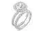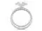 This beautiful bridal set showcases an 8mm round brilliant cut Moissanite by Charles & Colvard gemstone. Beautifully crafted in rhodium-plated 14K white gold and secured in a four-prong setting. Ring size 8. The Total Diamond Equivalent Weight (DEW) is 2.87cttw (Actual Weight 2.52cttw).