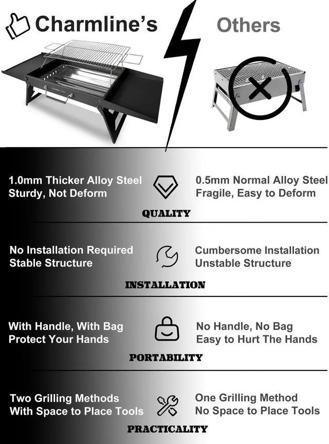 Embrace every outdoor feast with the folding barbecue grill in your hands! Whether it's a weekend family gathering or a camping trip, this grill delivers the perfect grilling experience. Its clever folding design allows you to carry it easily without taking up much space. The efficient heating system ensures that every bite is delicious and juicy; the sturdy and durable material allows you to enjoy long-lasting grilling fun. Convenient folding: easy to store, space-saving. Efficient heating: evenly heated, locking in the flavour. High-temperature resistant material: sturdy and durable, long-term use without worry. Easy to clean: easy to dismantle and clean. Enjoy the fun of barbecuing and make every party an unforgettable memory! Own this folding barbecue grill immediately and let the delicious flavours be presented anytime and anywhere!