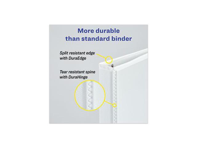 Heavy-duty binders for extended use. Four clear interior pockets offer extra storage.