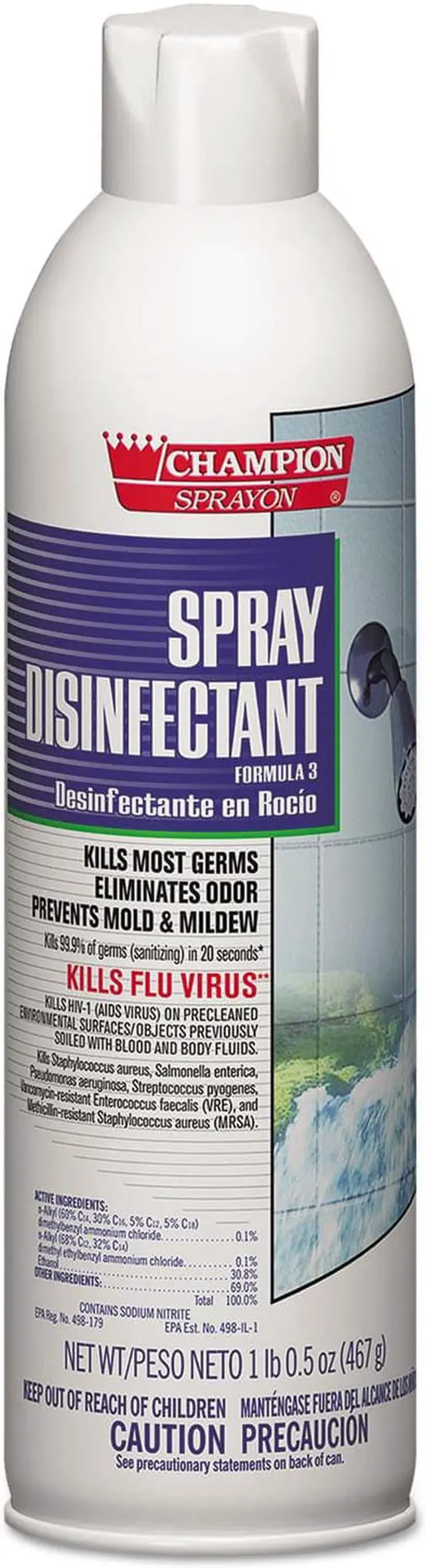 Hospital-type formula spray disinfectant kills 99.9% of germs in 20 seconds and 100% of germs in 10 minutes, including HIV-1 on precleaned environmental surfaces or objects. Also effective against fungi and prevents mold and mildew on hard surfaces.