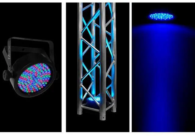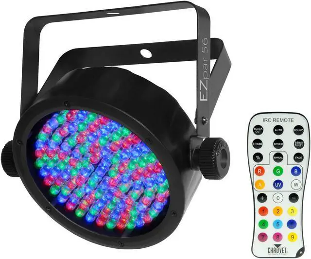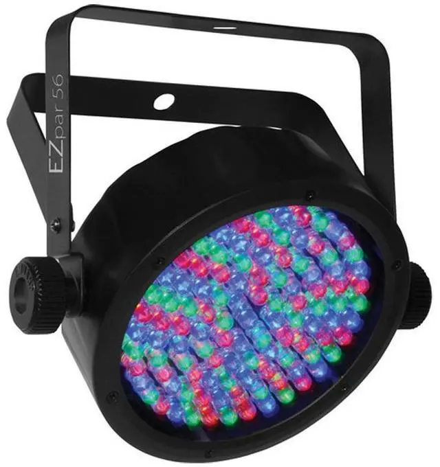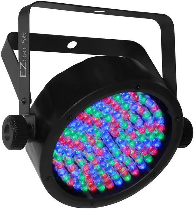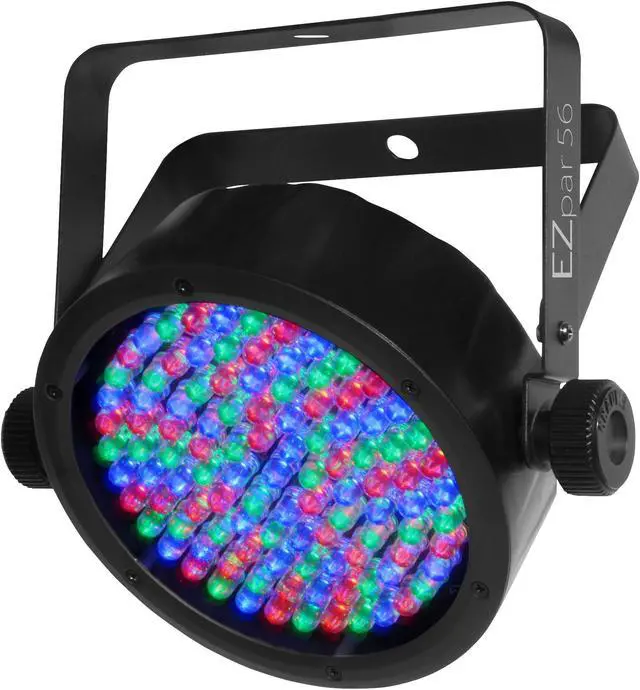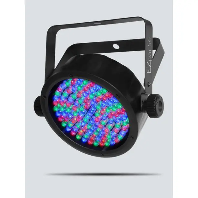 EZpar 56 is a battery-powered wash light designed to speed up the setup process by freeing the mobile entertainer from the hassle of running cables. The rechargeable lithium-ion battery lasts up to 20 hours on a single charge and powers all 108 red, green, blue LEDs to deliver stunning colors. Built-in automated and sound-activated programs are accessible using the included IRC remote and in DMX or master/slave mode. Its compact design easily fits inside sticks of TRUSST and a built-in battery life indicator allows you to easily keep tabs on the remaining charge. EZpar 56 fits best in the optional CHS-25 VIP Gear Bag for secure and convenient transportation.