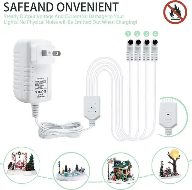 Long Cords: the lighted accessory equipped with 4 boutlets You can light up 4 Christmas decorations with one adapter at the same timeVolts: Input Voltage 100-240VAC 50/60Hz. (