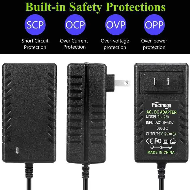 Supply Polarity: Center or Tip is positive (+) Sleeve is negative(-). Built-in Power Supply Protection-- Certified by UL it ensures safe use with over voltage over current and over temperature protection to keep all of your mobile devices safe from unexpected surges and spikes. Wide voltage range from 100V to 240V makes it suitable for travel. Wide Applications-- 12V 3A Power adapters are in high demand for audio amp boards portable powered speakers cable boxes LED light strips LCD monitor wireless routers CCTV cameras DC motors 3D printers computer projects HUB Switches audio/ video power supply and Arduino controllers to provide a safe and stable power supply for your creation.