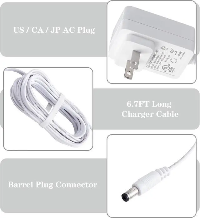 Barrel Plug ConnectorCable Length: 6.7 Feet/ 200cmPerfect CompatibilityPower Adapter Cord Suitable for Fisher-Price Snugapuppy SwingRainforest Cradle SwingButterfly Ocean WondersPapasan Cradle SwingsSecurityWall Plug Power Cord is UL & Rohs Certified UL Listed: Tested Approved And Certified by UL. UL Number is Unique. UL Testing is Authorized By Osha - Us Federal Agency; Tested by the Manufacturer to Match and & or Exceed The OEM SpecificationsNoteNot Compatible With W/ Fisher Price Rock & Play Models; Not Compatible With All Graco Baby Swing Snoo Bassinet Happiest Baby Bassinet 4moms Baby swingPackage Included1X 6V Wall Power Adapter Our 18 - Month Warranty and Our Dedicated Customer Service