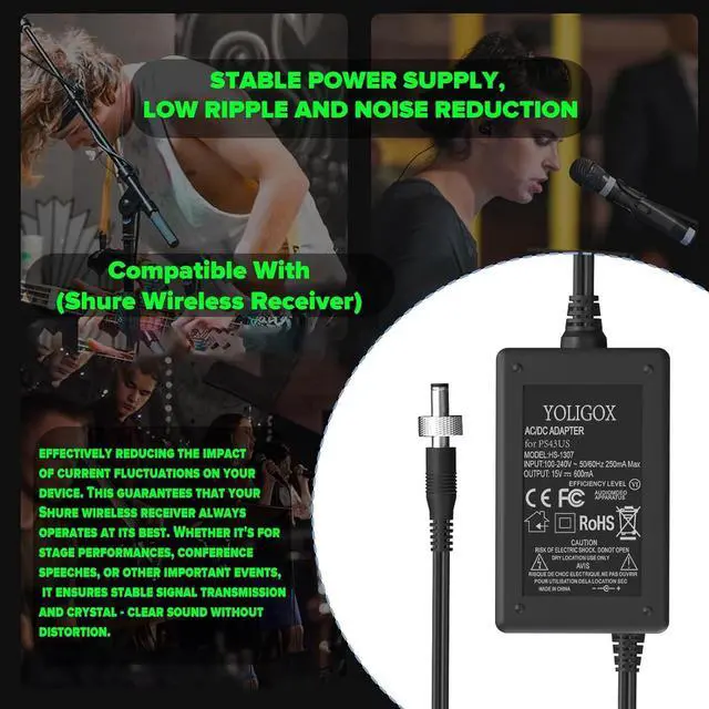 [You will get]: 1*Fits Shure PS43US Power Supply. Choose our 15V 600Ma power supply to find the perfect power companion for your Shure wireless receiver and elevate your audio experience!
