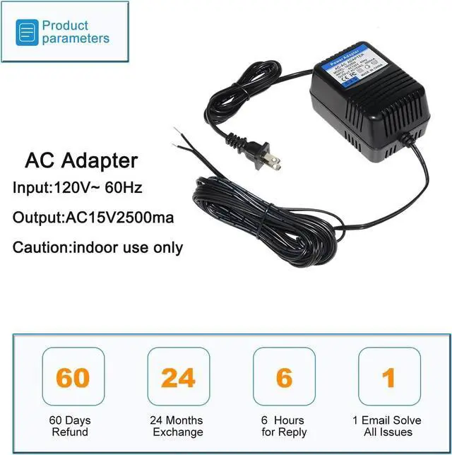 Part No P/N: 2739-208 2739208 15VAC BattAngel BA57 Charger Acorn 120 and 130 only 2.5 AAC at 15VAC AC15V 2.5A For Indoor use Switching