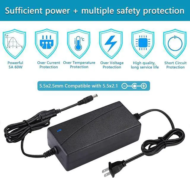 Output adaptor jack size: 5.5 mm x 2.5 mm compatible with 5.5 mm x 2.1 mmSafety features: Automatic overload cut-off over Voltage cut-off automatic thermal cut-off short circuit protection.