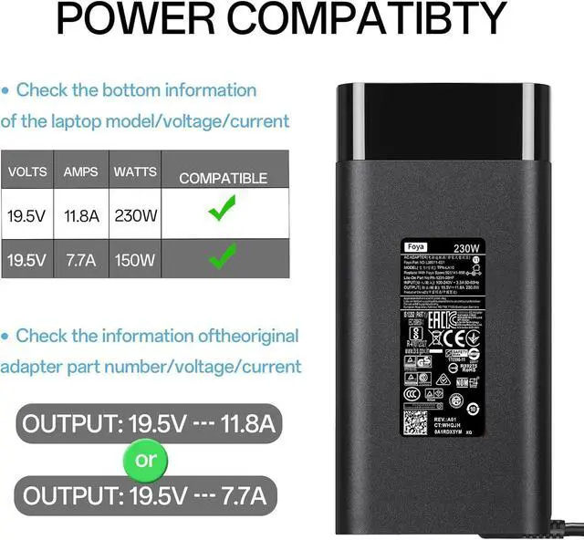 CE & FCC certifiedCompatibility notice: Before purchase check that your laptop needs 230W ( 19.5V 11.8A ). This model typically uses the blue round connector.