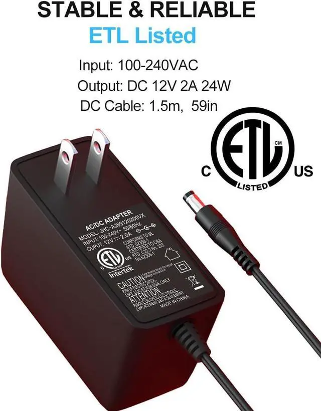 Safety / ETL Listed: this 12V power adapter Passes ETL certification comforms to UL std 62368-1 which is an ideal 12V power supply ac adapter wall charger replacement for your broken or missing adapterMuch more sturdy design this adapter was the perfect replacement for your lost 12V power cord. 12V adaptor manufactured with the superior materials and include multiple safe guarding against over voltage short circuit internal overheating.