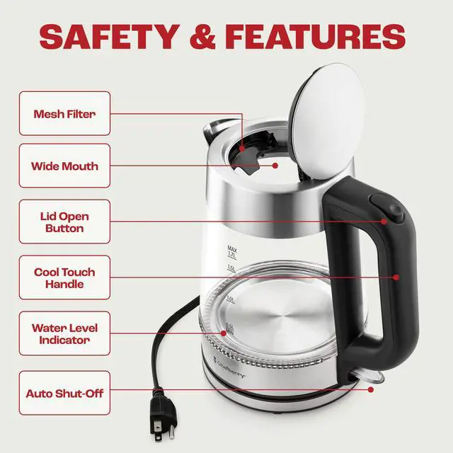 Premium borosilicate glass body offers exceptional durability and long-lasting clarityresistant to thermal shock, scratches, and staining. Its crystal-clear design lets you enjoy the bubbling water show while ensuring every boil is as pure, fresh, and safe as it looks.