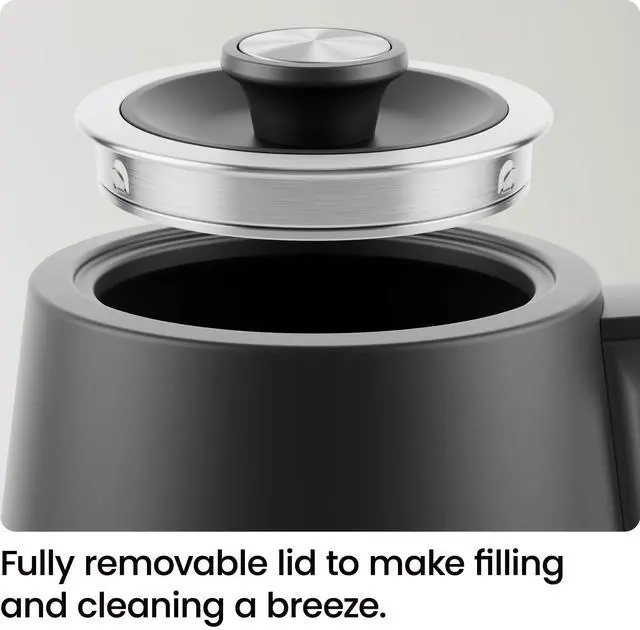 LIFT-OUT LID: The lid of this small electric kettle is fully removable to easily fill in the sink. Use the water-level gauge to observe how full this stainless-steel kettle is.