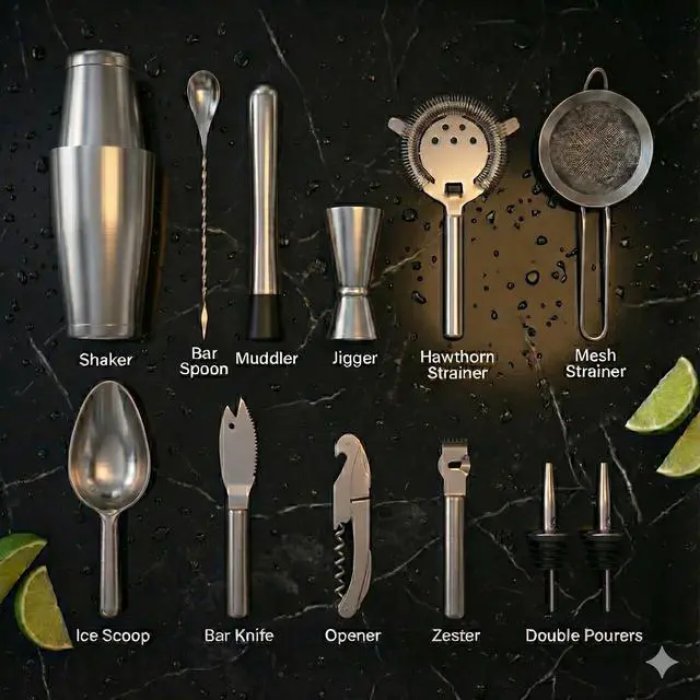 | Included Components | 25oz Stainless Steal Boston Shaker, Jigger 4 measurements | 1oz, 3/4oz,1/2oz,1/4oz,, Muddler, Two Drink Pourers, Zester/Peeler |