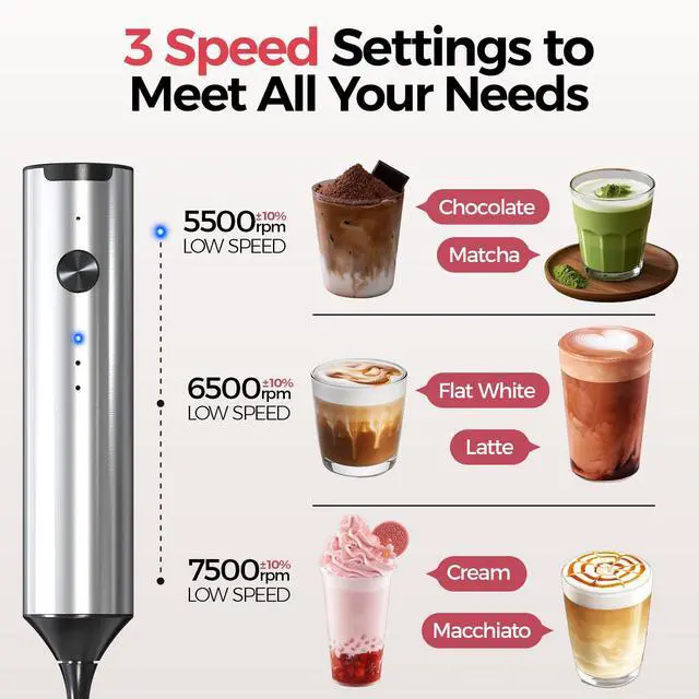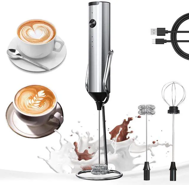 Elevate your beverage experience with our state-of-the-art YARRAMATE USB Rechargeable Electric Milk Frother. It is a great coffee accessory for coffee bars. Designed with both style and functionality in mind, this electric stirrer features a trendy design accented by unique decorative details that complement its brushed stainless steel body. Whether you're preparing a frothy cappuccino or a velvety latte, the frothers dual food-grade whisk heads and three adjustable speeds allow you to fine-tune your foam to perfection. Enjoy the convenience of a built-in rechargeable lithium battery paired with a Type-C USB charging cable, making this drink stirrer as efficient as it is stylish. Crafted with food-safe materials, this matcha mixer is the ideal addition to any modern kitchen seeking a professional-grade foam experience at home. Hygienic Travel-Ready Kit - Travel-Ready Design - Compact 10.24in/26cm coffee mixer (0.48lb/217g) stores in kitchen drawers. Non-slip grip makes it the ultimate whisking electric tool for dorm/office use. Effortless Maintenance - Clean the electric stirrer attachments in 30 seconds. Wipe sleek body with damp cloth. Product Specs: Brand: YARRAMATE | Type: Stainless Steel Rechargeable Handheld Milk Frother and Coffee Whipper With Stand | Material: Food-Grade Stainless Steel+BPA-Free Plastic | Power: Type-C USB Charging | Included: Included: 2 x Whisk Heads, 1 x Charging Cable, 1 x Storage Stand, 1 x Protective Bag