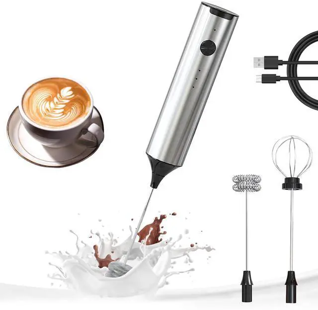 Elevate your beverage experience with our state-of-the-art YARRAMATE USB Rechargeable Electric Frother. It is a great coffee accessories for coffee bar. Designed with both style and functionality in mind, this electric stirrer features a trendy design accented by unique decorative details that complement its brushed stainless steel body. Whether you're preparing a frothy cappuccino or a velvety latte, the frothers dual food-grade whisk heads and three adjustable speeds allow you to fine-tune your foam to perfection. Enjoy the convenience of a built-in rechargeable lithium battery paired with a TYPE-C USB charging cable, making this drink stirrer as efficient as it is stylish. Crafted with food-safe materials, This matcha mixer is the ideal addition to any modern kitchen seeking a professional-grade foam experience at home. Hygienic Travel-Ready Kit - Travel-Ready Design - Compact 9.65inch/24.5cm coffee mixer (0.57b/259g) stores in kitchen drawers. Non-slip grip makes it the ultimate wisking tool electric for dorm/office use. Effortless Maintenance - Clean stirrers electric attachments in 30 seconds. Wipe sleek body with damp cloth. Product Specs: Brand: YARRAMATE | Type: Stainless Steel Rechargeable Handheld Milk Frother and Coffee Whipper With Stand | Material: Food-Grade Stainless Steel+BPA-Free Plastic | Power: TYPE-C USB charging Design | Included: 2 x Whisk Heads, Charging Cable, Storage Stand, Protective Bag