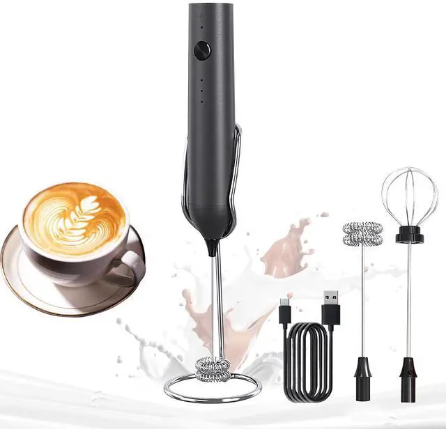 Barista-Grade Foam in Seconds - YARRAMATE milk frother creates velvety foam in 15-20 seconds with 3-speed control (High/Medium/Low). Perfect for coffee frother handheld use in home cafes or camping mornings. Power Management - Rechargeable mixer electric handheld shows battery status via indicators. Ultra-lightweight (0.6lb) stainless steel body fits in any coffee kit. Dual Professional Whiskers - Includes spiral whisk (ideal milk frother) + balloon whisk (expert electric whisk for cream/eggs). Both dishwasher-safe stainless steel attachments. Travel-Ready Design - Compact 10.24inch/26cm coffee mixer (0.48lb/217g) stores in kitchen drawers. Non-slip grip makes it the ultimate wisking tool electric for dorm/office use. Effortless Maintenance - Clean stirrers electric attachments in 30 seconds. Wipe sleek body with damp cloth. Comes with matching stainless steel stand. Product Specs: Brand: YARRAMATE | Type: Rechargeable Coffee Frother Handheld | Material: Food-Grade Stainless Steel+ ABS Plastic | Included: 2 x Whisk Heads, Charging Cable, Storage Stand