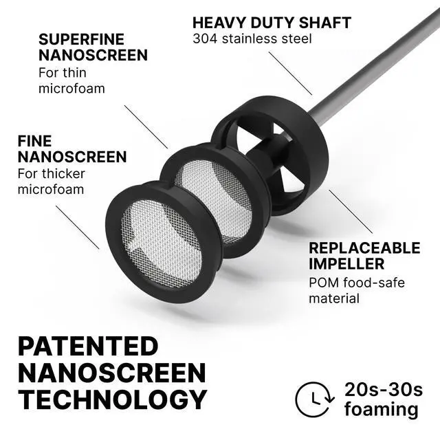 | Use | Creating microfoamed milk for barista style coffee | Creating microfoamed milk for barista style coffee | Espresso Preparation | Heating and pouring milk for barista style coffee | Heating and pouring milk for barista style coffee |