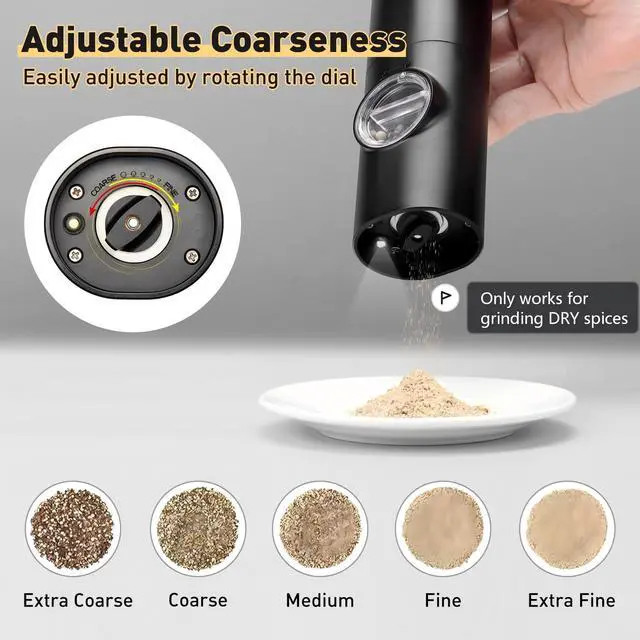 There’s also a white LED light turning on while the battery's pepper grinder working so that seasonings can be seen clearly.