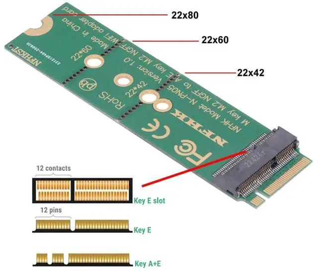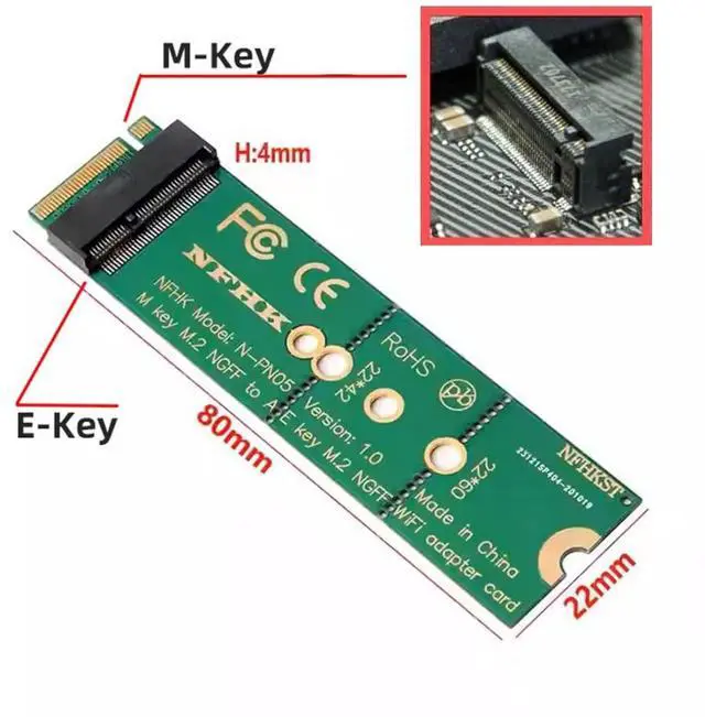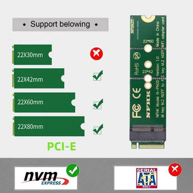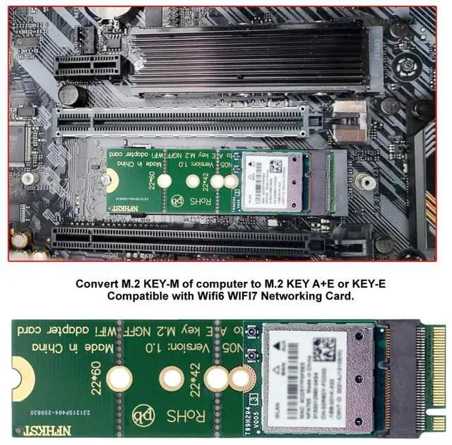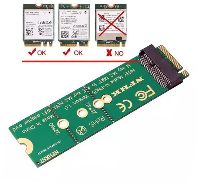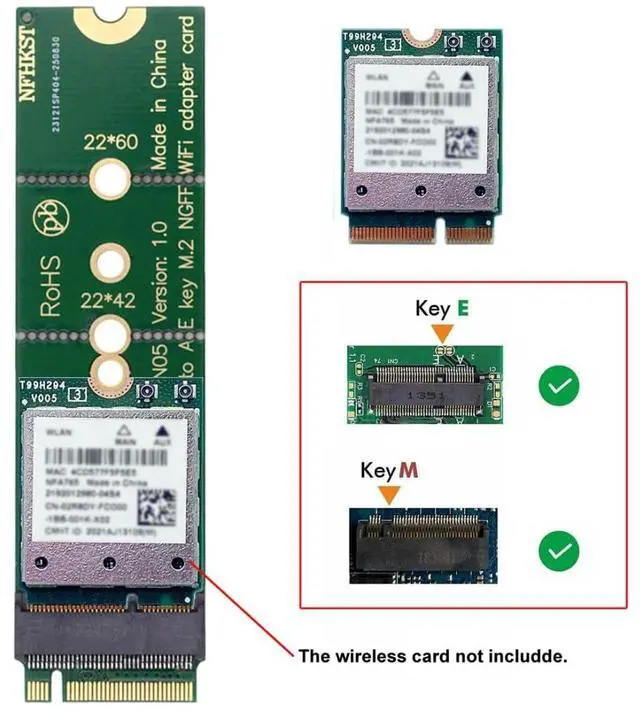 1) Note: This adapter card only supports A+E key or E key M.2 NGFF PCIe protocol wireless network card, and does not support any CNVI protocol wireless network card.