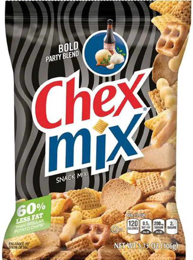 | Features | Mixed - 3.75 oz - 8 / Carton Bold mix offers zesty combination of flavors Great-tasting recipe contains 60% less fat than regular potato chips Bold mix includes Corn Chex, pretzels, rye chips and more Perfect for boosting office morale, impressing guests and more |
