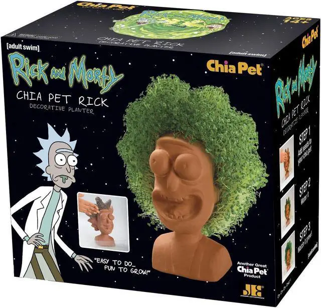 Introducing the Chia Pet Planter - Rick & Morty - Rick, a quirky and iconic addition to your indoor garden. Watch the eccentric scientist Rick Sanchez come to life as vibrant chia sprouts give him a unique green look. This one-of-a-kind planter is easy to grow and care for, making it a fun and imaginative piece of decor for fans of the Rick & Morty series. Whether for yourself or as a whimsical gift, the Chia Pet Planter - Rick & Morty - Rick is sure to bring a touch of animated humor and adventure to your home.