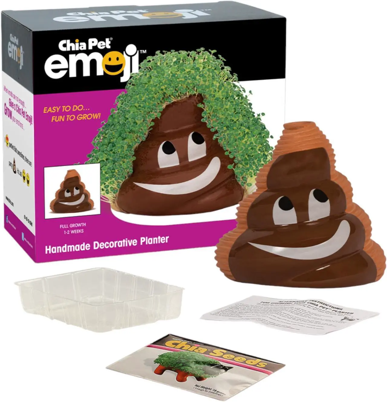 Chia - Pet Planter Decorative Collectibles Pottery Indoors Plant(Emoji - Poopy). Partial Sun Light Needed Indoor Only.