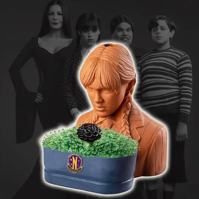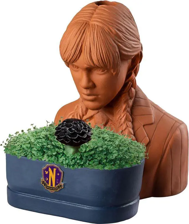 Chia - Introducing the Chia Pet Planter (Wednesday) a delightfully macabre and iconic addition to your indoor garden. Watch the beloved character Wednesday Addams from the Addams Family come to life as vibrant chia sprouts transform her appearance. This unique planter is easy to grow and care for making it a fun and whimsical piece of decor for fans of the Addams Family. Whether for yourself or as a unique gift the Chia Pet Planter - Wednesday is sure to bring a touch of dark humor and charm to your home. - 1 Pack