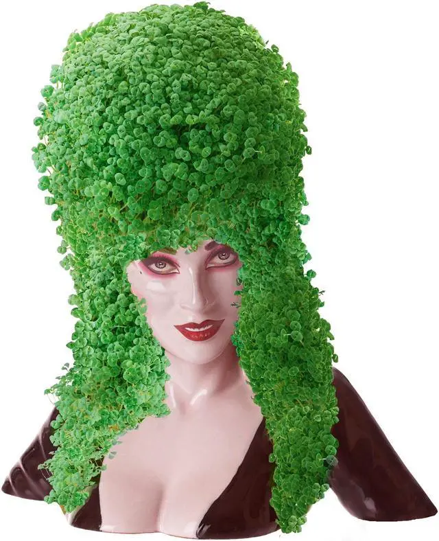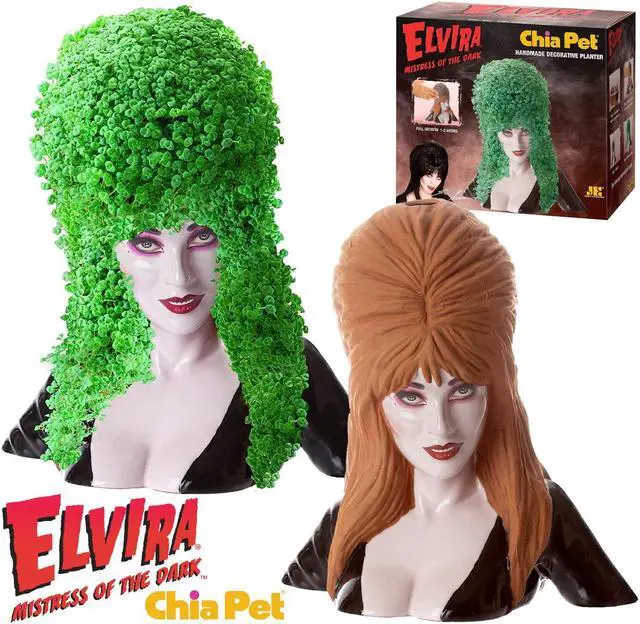 Chia - Introducing the Chia Pet Planter - Elvira a seductive and bewitching addition to your indoor garden. Watch Elvira's iconic hair come to life as it sprouts with vibrant chia seeds adding a touch of dark and delightful charm to your space. This unique planter is easy to grow and care for making it a fun and whimsical way to embrace the mysterious and macabre. Whether for yourself or as a captivating gift the chia pet planter - Elvira is sure to cast a spell of intrigue in your home.