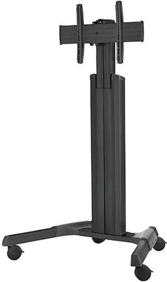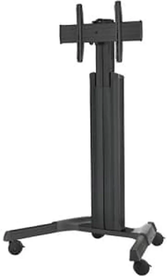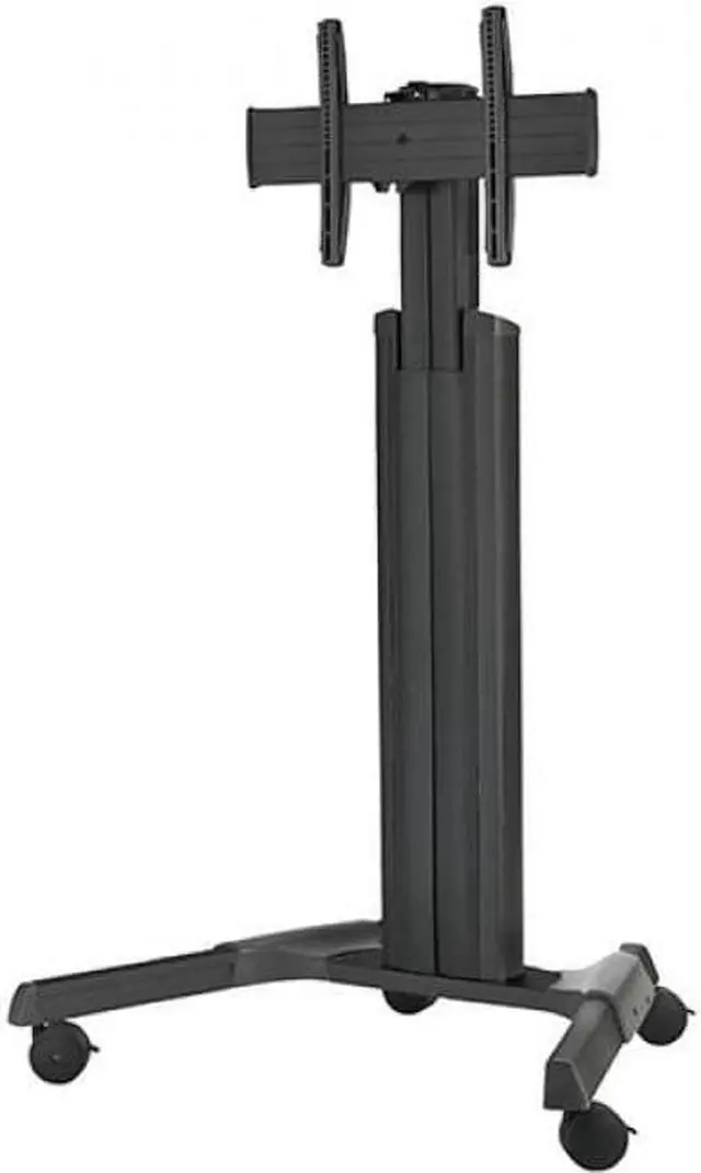This mobile Fusion cart incorporates rounded edges and sleek features to give the cart a softer professional feel that fits well in corporate and classroom environments. The height can be adjusted by one person via hand or 1/2 hex bit on a power drill.