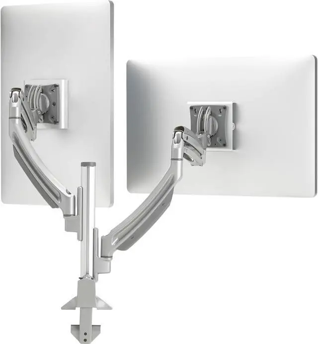 KONTOUR K1-SERIES, HEIGHT-ADJUSTABLE DUAL DISPLAY, COLUMN MOUNT WITH 2-LINK ARMS, SILVER. Replaces K1C200S. Accessories: KRA219S, KRA220S, KRA221S, KRA226S.