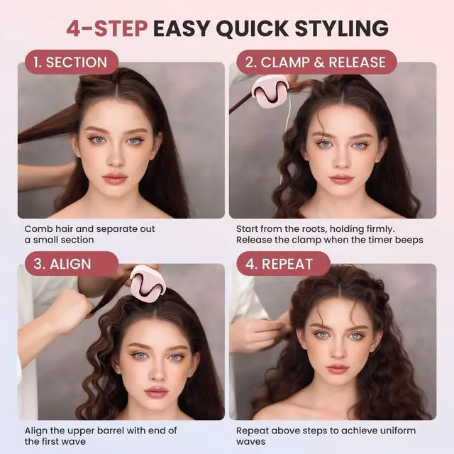 The S-shaped design can help you save styling time, and you can get two rolls with one press. Curls look more natural.