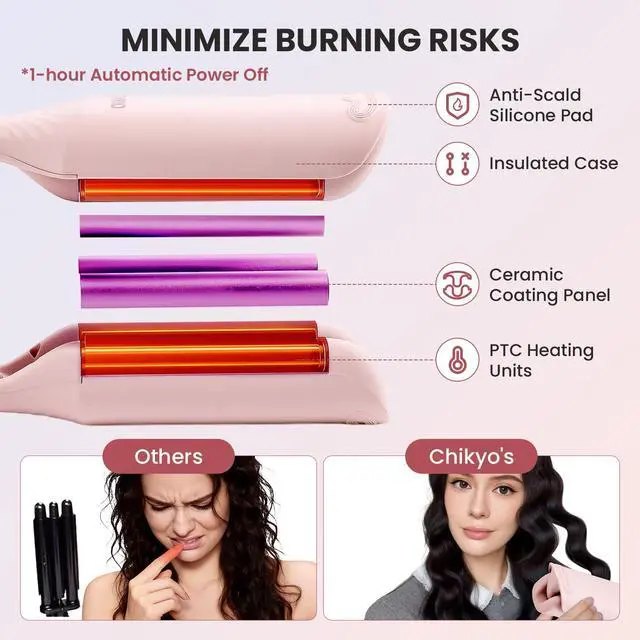 If you forget to turn off the mechine after using, CHIKYO curling wand will automatically turn off after 1 hour, greatly reducing the risk of fire.
