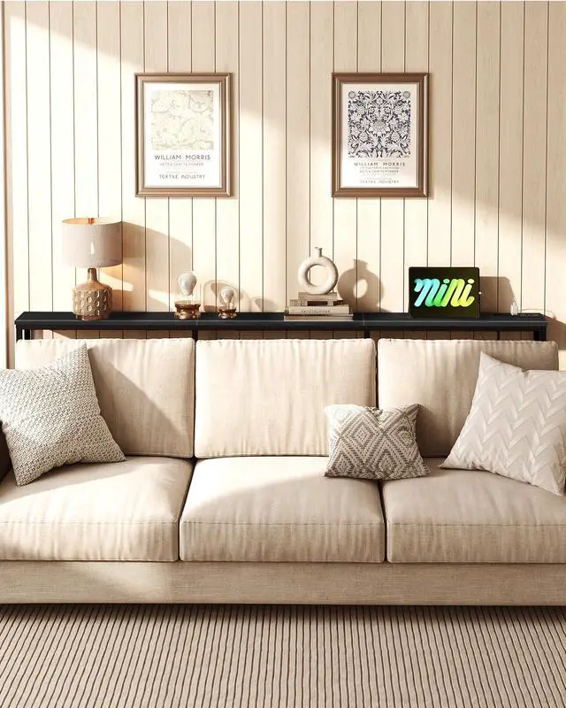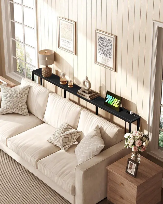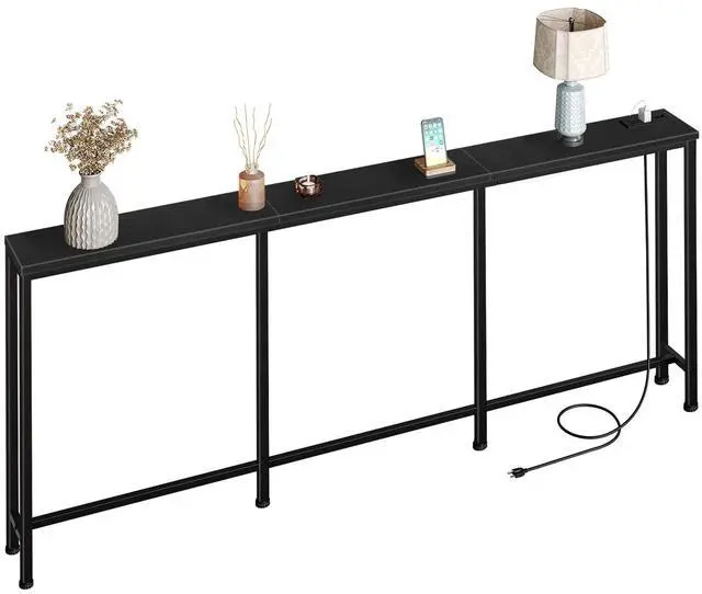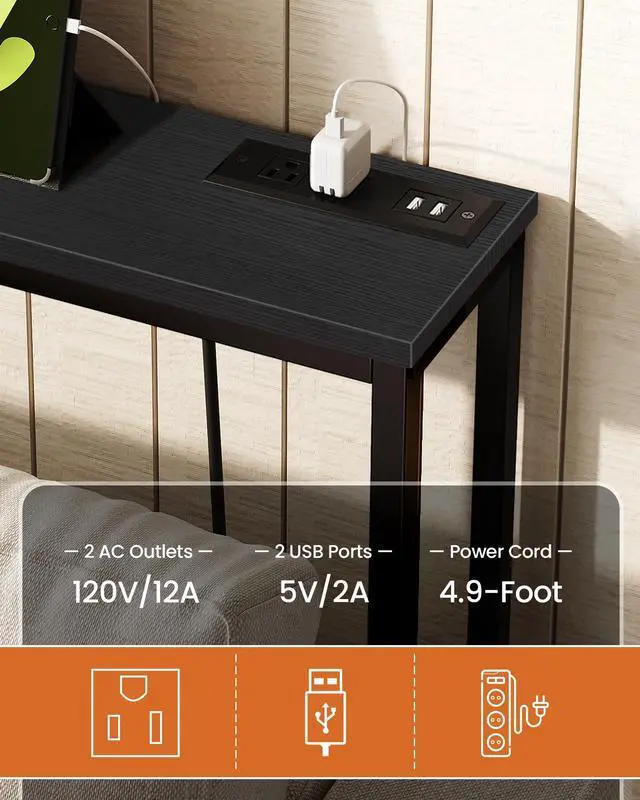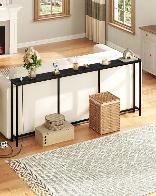 Designed for small spaces, this long console table combines both functionality and aesthetics. Perfect for hallways, living rooms, bedrooms and tight corners, this table boasts high-quality materials for long-lasting use. Equipped with 2 AC outlets and 2 USB ports, it effortlessly charges multiple electrical devices. Use it as an entry table, sofa table, behind couch table or console table to keep your home organized and stylish with CHOEZON.