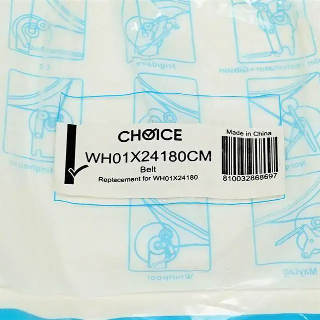 Choice Manufactured Part number WH01X24180CM. Washing Machine Belt 586J5, 23" long, 5 Ribs, 4 Grooves. Replacement for numbers WH01X24180, 290D1101P002, AP6024314, PS11736832. Designed to fit specific General Electric (GE) Clothes Washer Makes and Models.