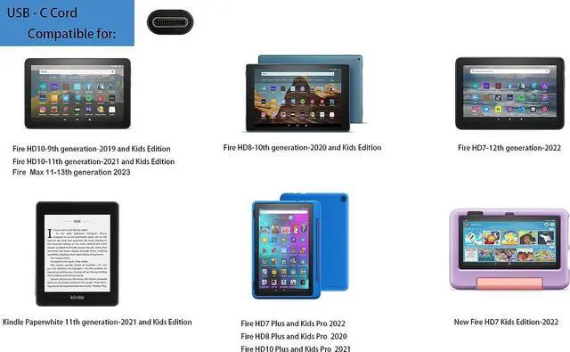 Note: The Amazon Kindle E-reader and Fire tablets both have 2 different interfaces and customers often make mistakes. To avoid this mistake we have equipped 2 charging cables with different interfaces at the same price. Ensure that the customer's device can be chargedCompatible with: All Fire Tablet and eReaders Fire Max 11 Tablet Fire HD 6 7 8 10 Tablet Fire HD 7 8 10 Plus Tablet Fire HD 7 8 10 Plus Kids Edition Fire HD 7 8 10 Kids Pro HD HDX 7'' 8.9 '' Paperwhite all version Voyage Oasis Kindel 2 3 4 5 6 7 8 9 10 11 and