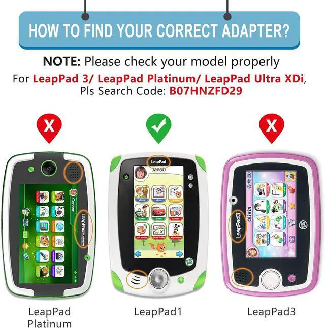 DC Output: DC 9V 1A (max) / Low interference and noise. High efficiency and reliability. Short circuit and over voltage protectionCOMPATIBILITY: This adapter works with LeapPad Glo LeapPad2 Power LeapPad2 Custom LeapPad2 Leapster LeapPad1 Leapster Explorer LeapsterGS Leapster2 Leapster L-max Leapster-Tv.