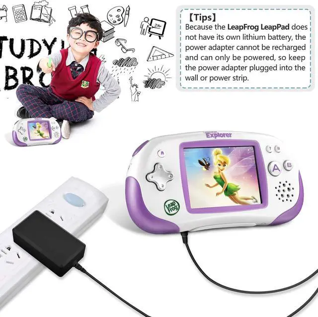 TIPS: Because the LeapFrog LeapPad does not have its own lithium battery the power adapter cannot be recharged and can only be powered so keep the power adapter plugged into the wall or power strip.