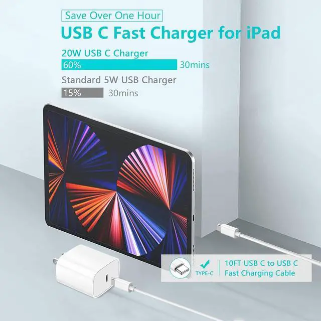 New iPad: This iPad charger perfectly compatible with USB C enabled devices Fast Charger for iPad Pro 13/11 inch M4 (2024) iPad Pro 12.9 inch 6th/5th/4th/3th Generation (2022/2021/2020/2018) iPad Pro 11 inch 3rd/2rd/1rd Generation (2021/2020/2018) iPad Air 13/11 inch M2 (2024 iPad Air 5th generation (2022) iPad Air 4th generation (2020) iPad 10th generation (2022) 2025 iPad 11 inch (A16) iPad Mini A17 Pro (2024) iPad Mini 6th Generation (2021).