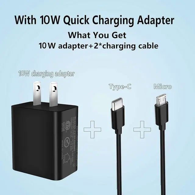 USB DevicesPackage Includes: 1 × Wall Charger1 × 6.6 FT Micro-USB Charging Cable1 × 6.6 FT Type C Charging CableSafety & Certification: UL Listed CE/FCC/RoHS certified with multiple protections such as over heat over current over voltage overload and short-circuit protections providing charging safety for your Kindle